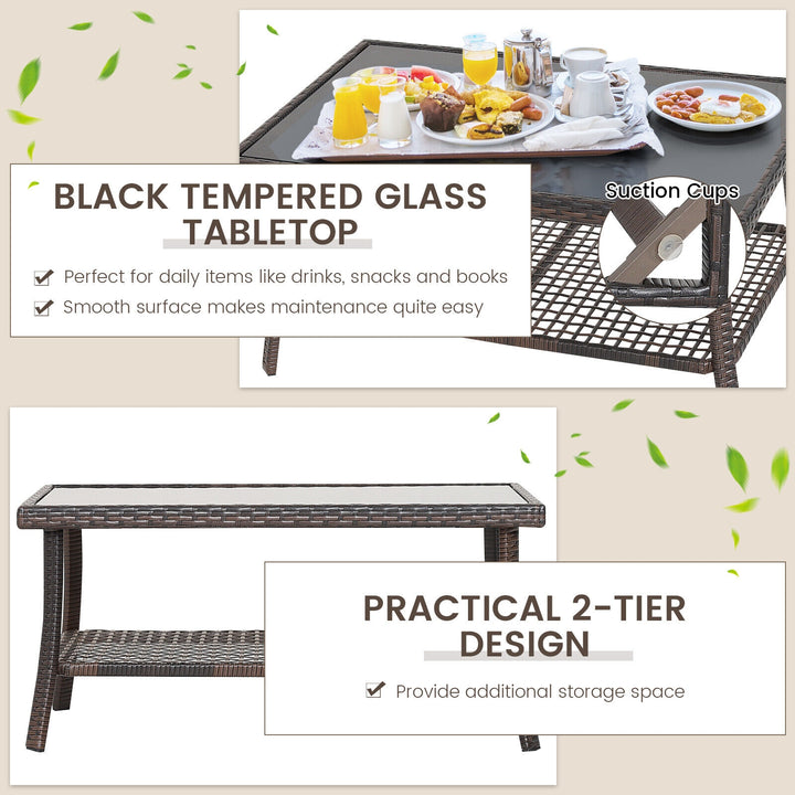Functional Coffee Table: The coffee table features a tempered glass top and a lower shelf for additional storage, with a load-bearing capacity of 110 lbs for the tabletop and 22 lbs for the shelf. Non-slip foot pads ensure stability.