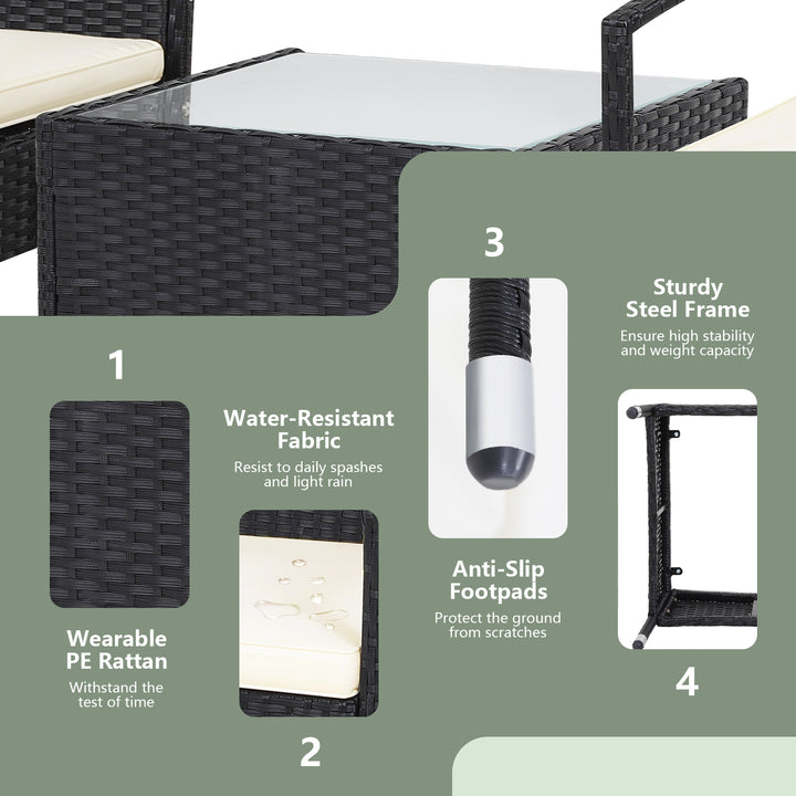 3 Pieces Patio Wicker Rattan Furniture Set with Cushion for Lawn Backyard