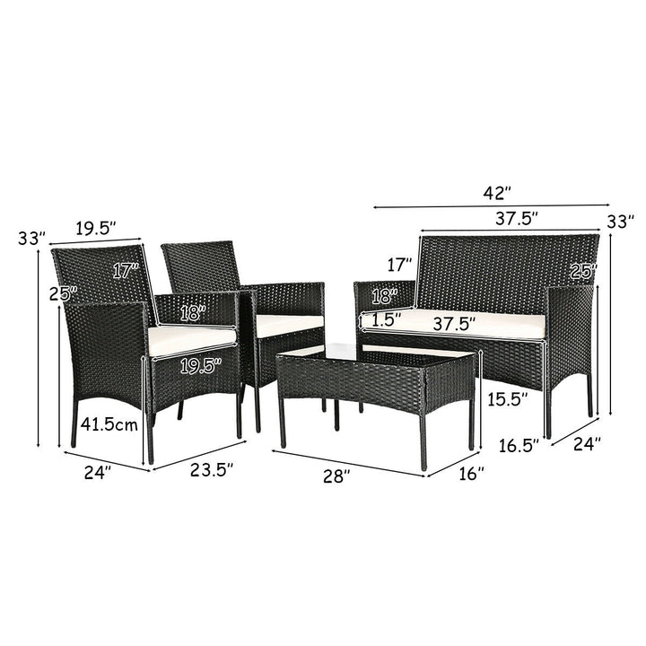4 Pieces Patio Rattan Cushioned Sofa Set with Tempered Glass Coffee Table
