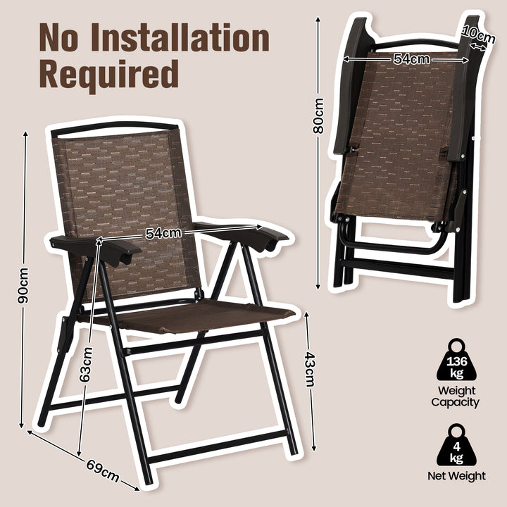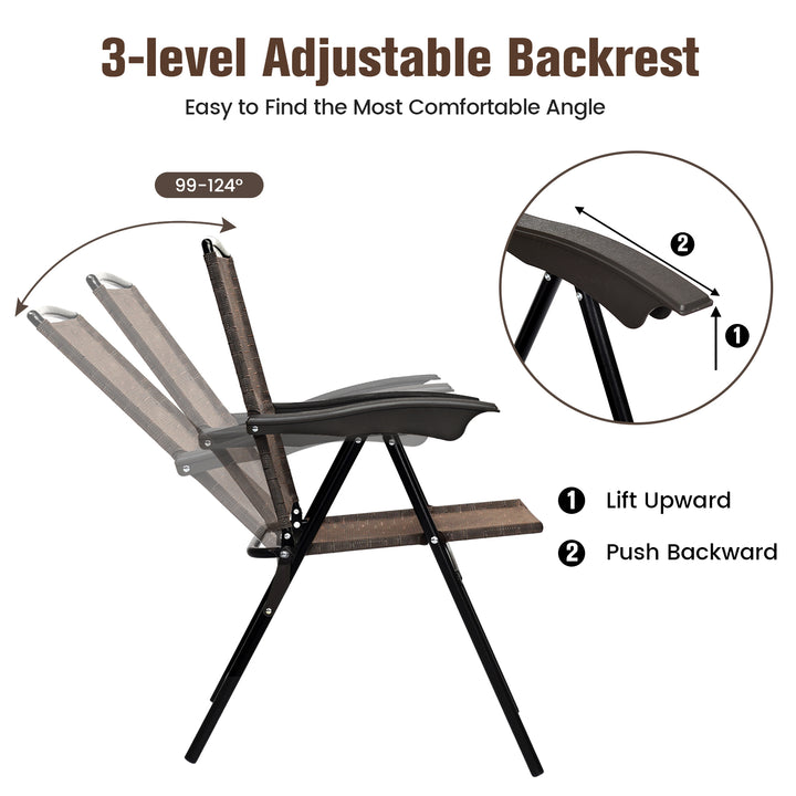 4 Pieces Folding Sling Chairs with Steel Armrests and Adjustable Back