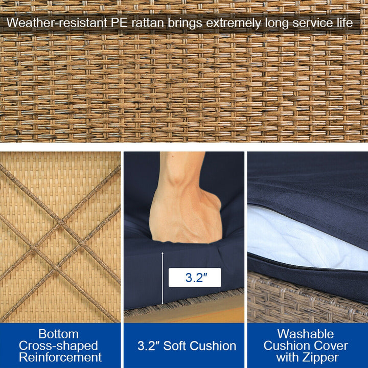 4PCS Patio Rattan Furniture Set with Wooden Side Table
