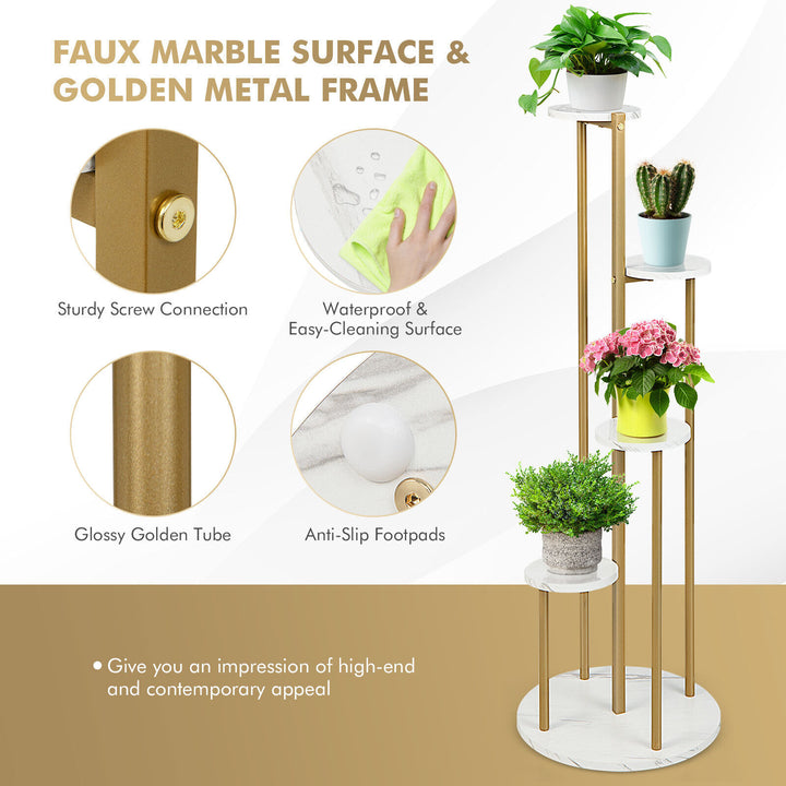 Stylish Decor for Any Setting: Measuring 16" x 16" x 48.5", this plant stand is perfectly suited for small spaces like corners and hallways, as well as making a striking statement in larger areas. Its golden frame and delicate marble texture add a chic and elegant touch to your living room, balcony, or office.