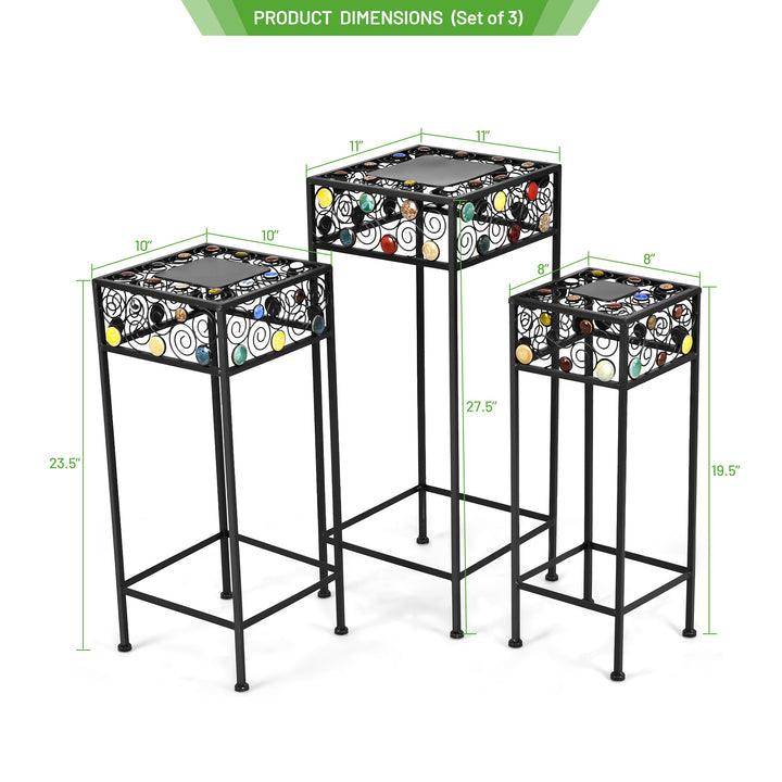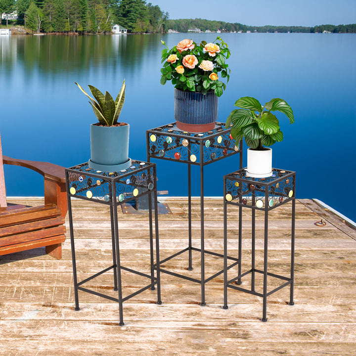 Introduce a touch of elegance and vibrancy to your home or garden with our Set of 3 Iron Square Plant Stands, adorned with multi-colored ceramic beads. These stands aren't just functional; they are a statement of style and durability, designed to elevate the beauty of your potted plants while ensuring stability and longevity.
