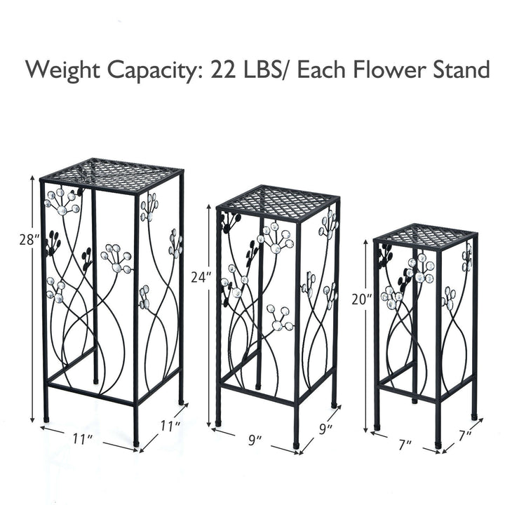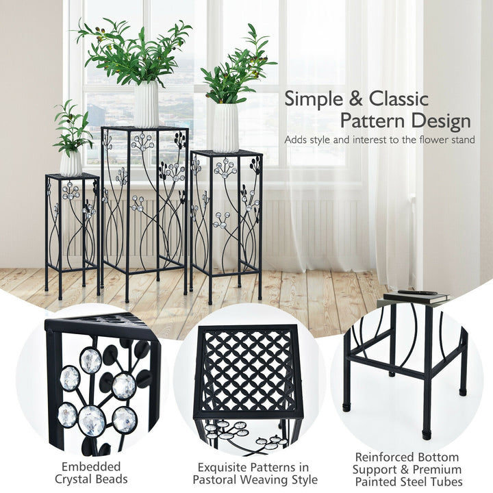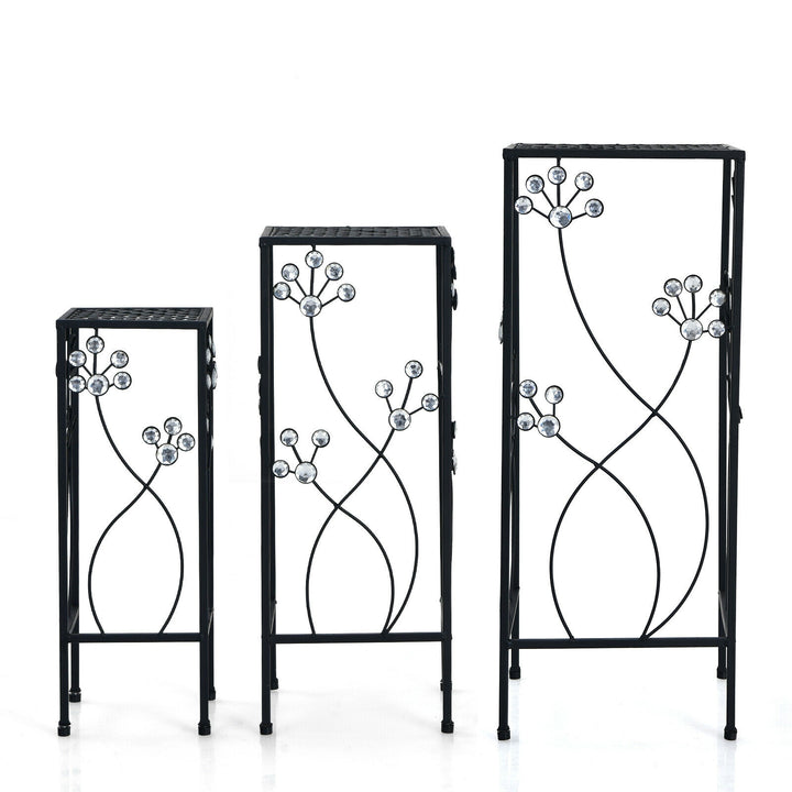 3 Pieces Metal Plant Stand Set with Crystal Floral Accents Square