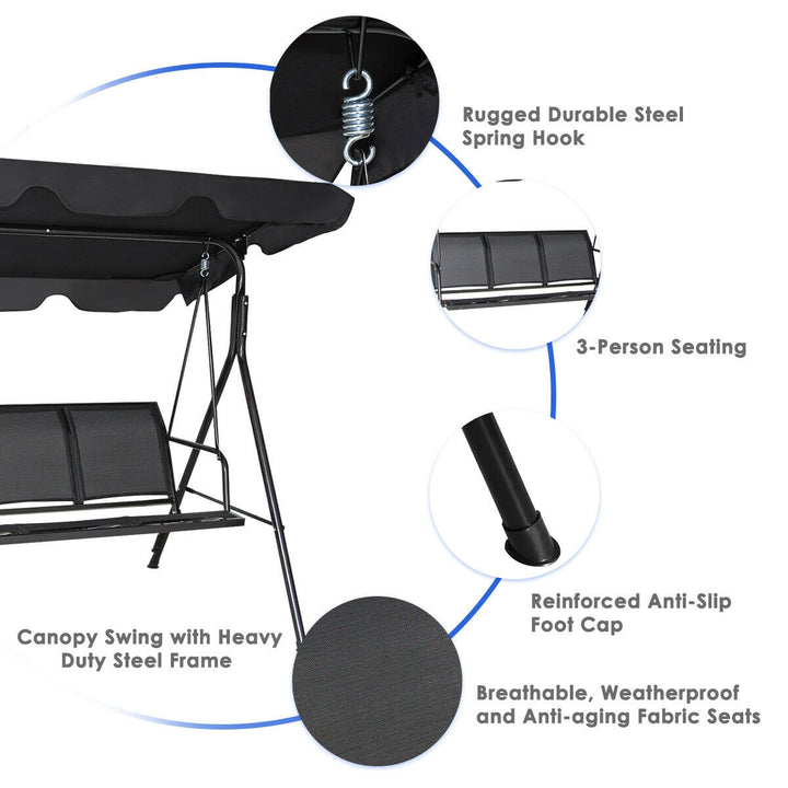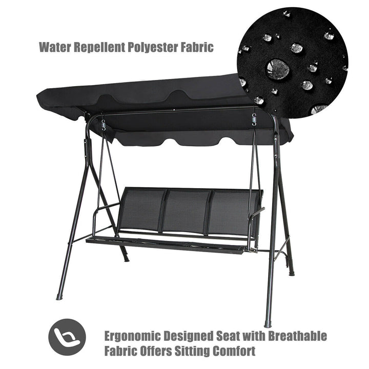 3 Person Patio Swing with Polyester Angle Adjustable Canopy and Steel Frame