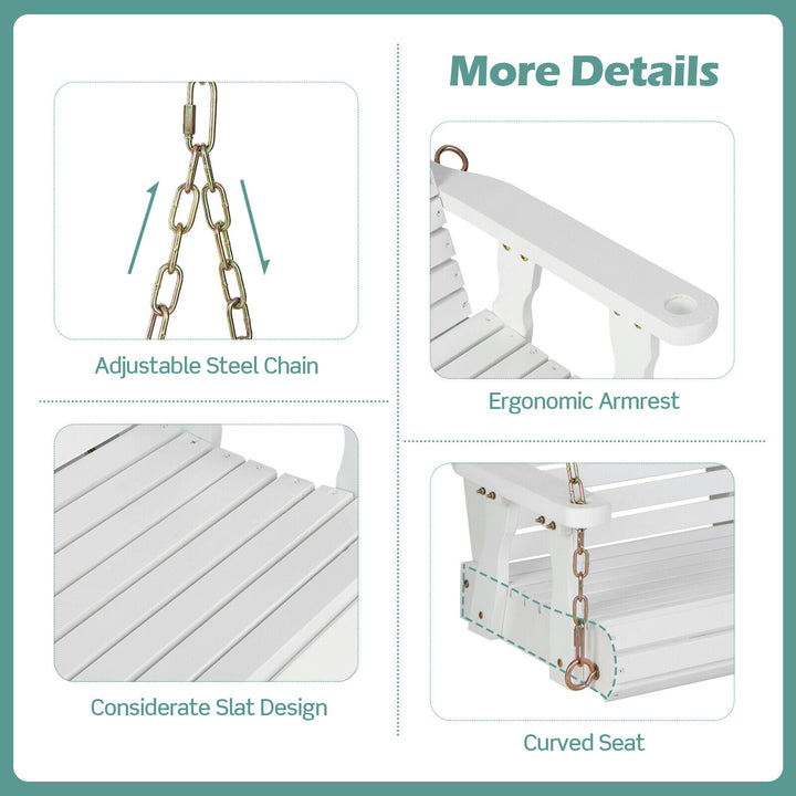 2-Person Wooden Porch Swing with Hanging Chains for Garden Yard