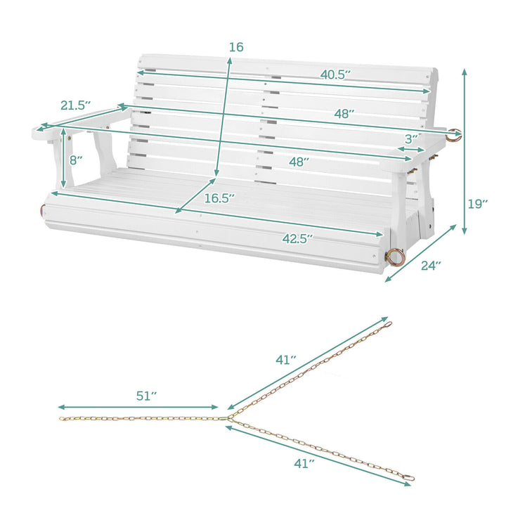 Premium Solid Wood Construction: Crafted from a solid wood frame and finished with PU painting, this porch swing is not only waterproof and burr-free but also boasts enhanced durability and stability to endure outdoor weather variations. The thoughtful slat design ensures efficient water drainage.
