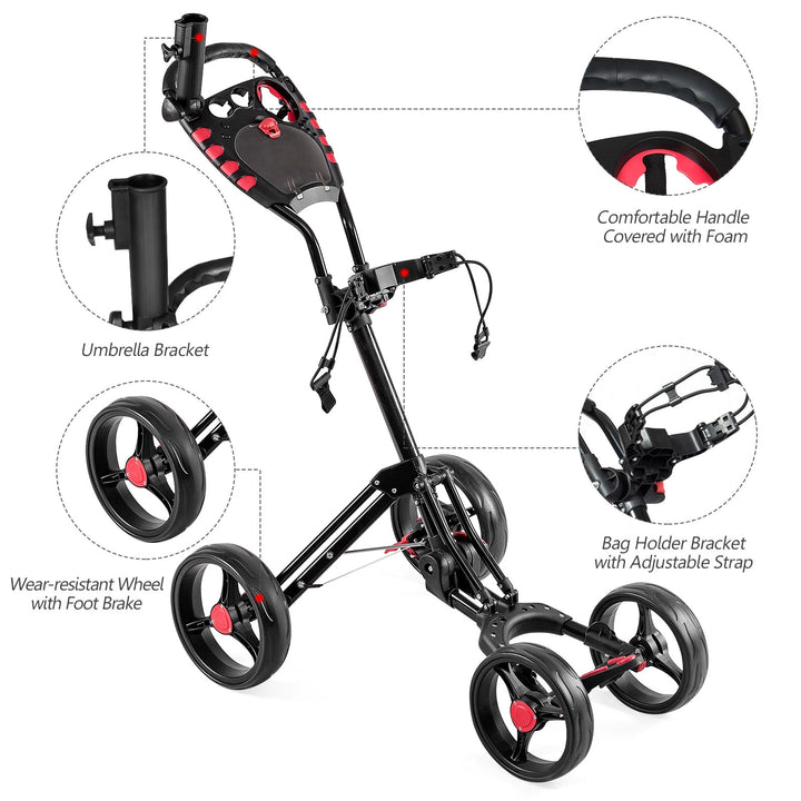4 Wheels Folding Golf Pull Push Cart Trolley