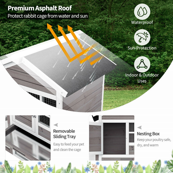 Durable Construction with Weatherproof Roof: Made with natural fir wood and a premium asphalt roof, our hutch provides a secure and durable home that protects your pets from rain and sun.