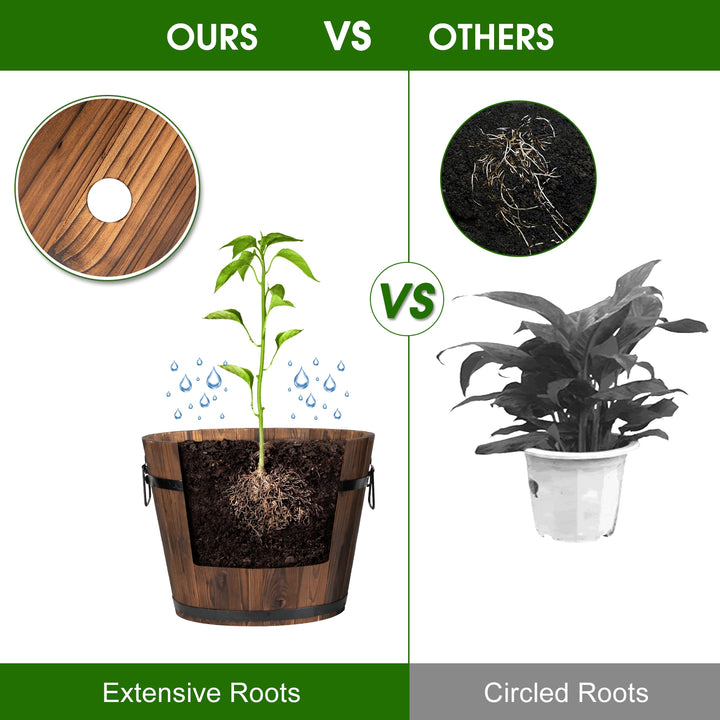 Durable Fir Wood Construction: Crafted from premium fir wood, these buckets offer exceptional strength and longevity. Treated with high-temperature carbonization, the wood's resistance to deformation is enhanced, ensuring your planters stand the test of time. The polished surface and reinforced with steel bands ensure stability and safety.