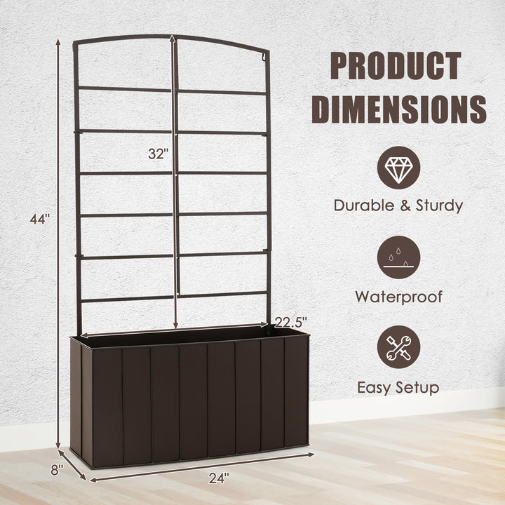 44 Inch Metal Raised Garden Bed with Trellis for Garden