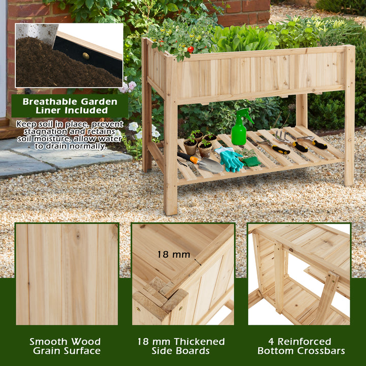 47 Inch Wooden Raised Garden Bed with Bottom Shelf and Bed Liner