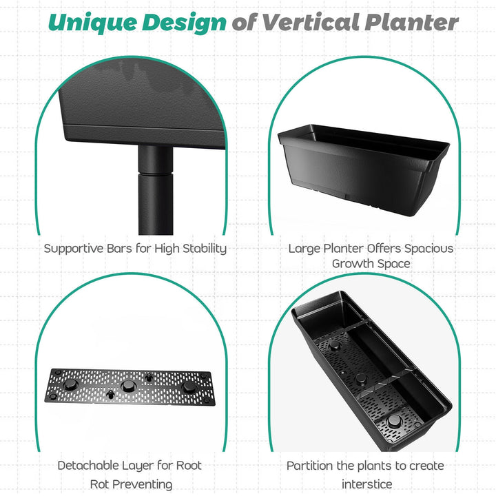 Modern Design for Various Settings: The sleek, vertical design is ideal for contemporary gardens, backyards, balconies, and more. It allows for the cultivation of different plant types in one unit, adding a lush, green accent to your home.
