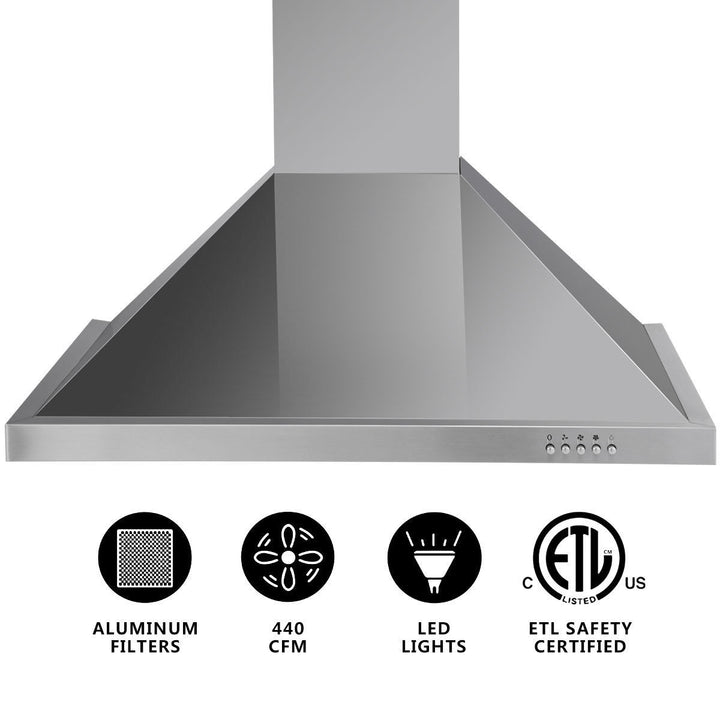 Powerful 440 CFM Motor: Equipped with a robust 230 W motor, this range hood provides exceptional ventilation power, ensuring that your kitchen air remains fresh, even when cooking the most flavorful dishes.