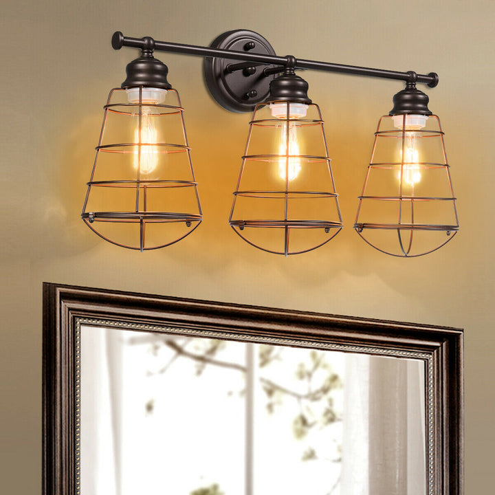 3-Light Vanity Lamp Bathroom Fixture with Metal Wire Cage