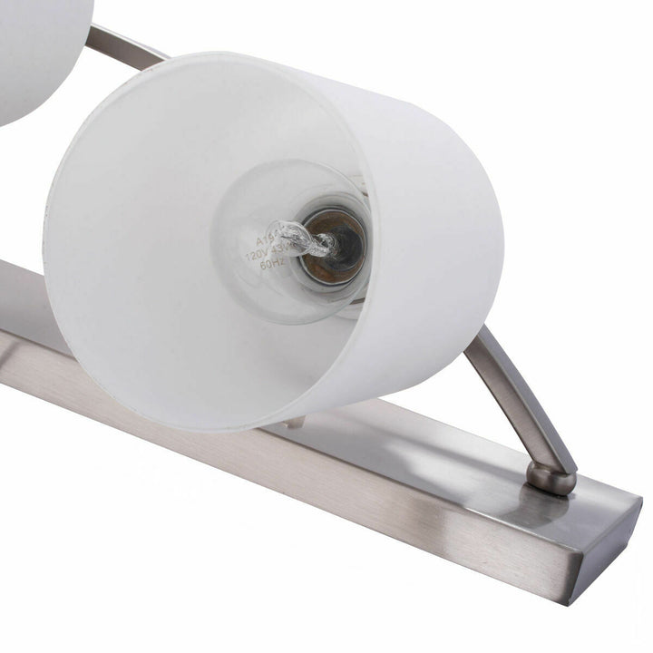 Elegant and Contemporary Design: The vanity light's graceful design, combining frosted glass with brushed nickel, adds a touch of elegance to any room, making it a perfect choice for those seeking both style and illumination.