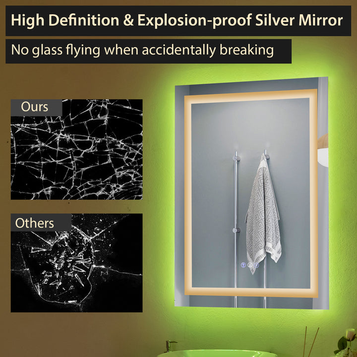 32 Inch x 24 Inch Bathroom Anti-Fog Wall Mirror with Colorful Light