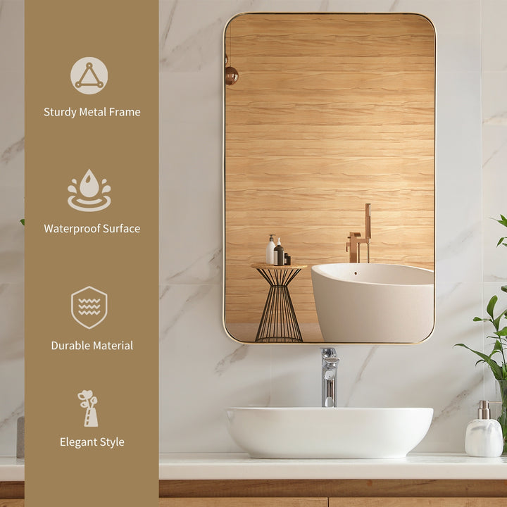 Elegant Design: Features a classic gold or black metal frame with rounded corners for a soft, elegant look. The mirror itself is a statement piece that can complement any home decor.