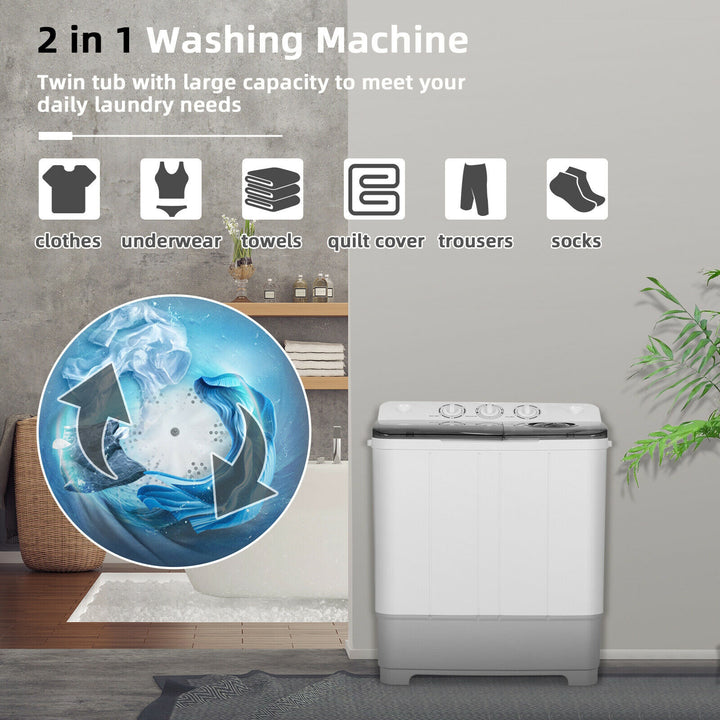 2-in-1 Portable 22lbs Capacity Washing Machine with Timer Control