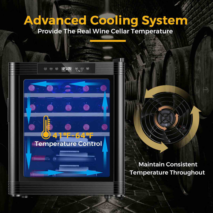 Optimal Cooling Technology: Our wine cooler's sophisticated cooling system maintains a consistent internal temperature, ensuring your wine's flavor and integrity are preserved. The temperature control settings allow for precise adjustments, creating the ideal environment for your wine collection.