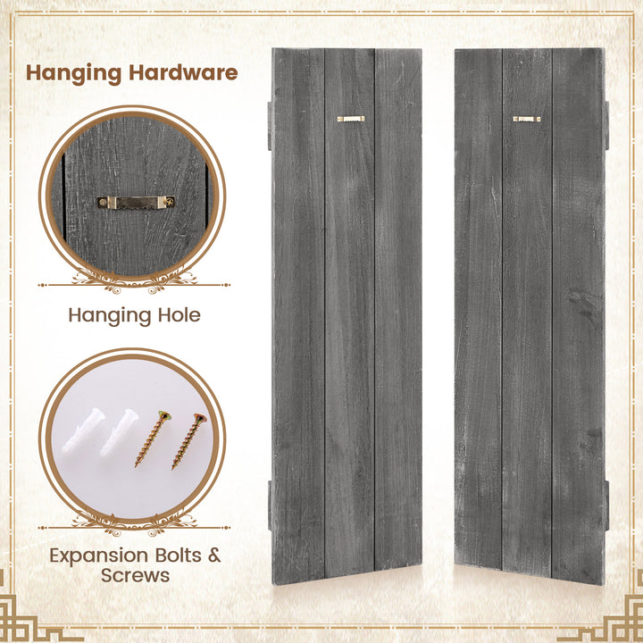 Wall Mounted Installation: Our window shutters come with all the necessary hanging hardware, including expansion bolts and screws, making wall-mounted installation quick and effortless. The wall-mounted design not only adds visual interest to your walls but also maximizes space utilization in your home.