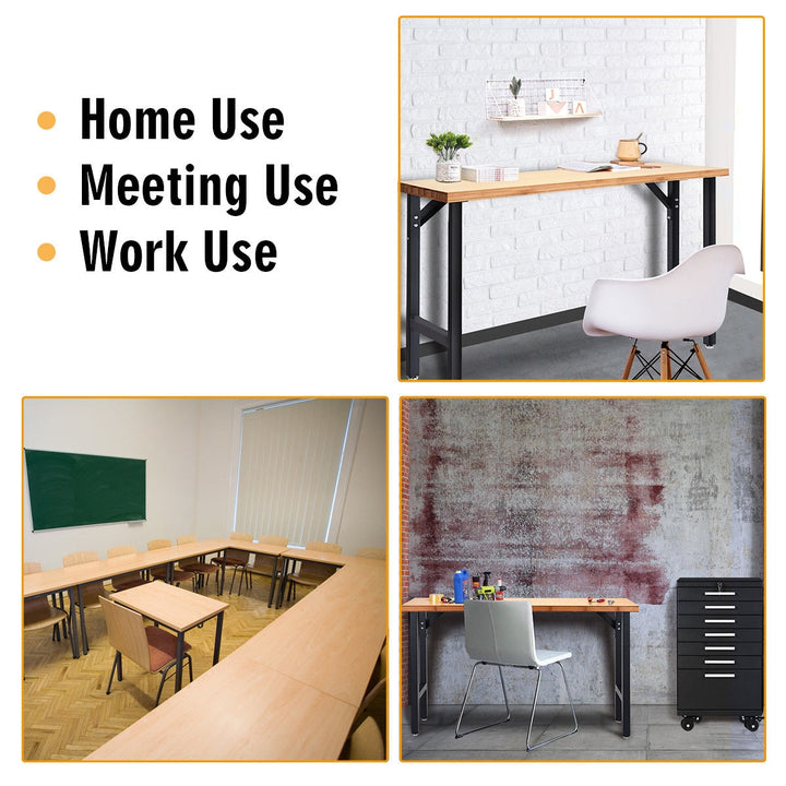 Sturdy and Stable Construction: Constructed with a thick bamboo top and steel-reinforced frame, it's capable of supporting up to 1500 lbs. Adjustable leg pads further enhance stability.