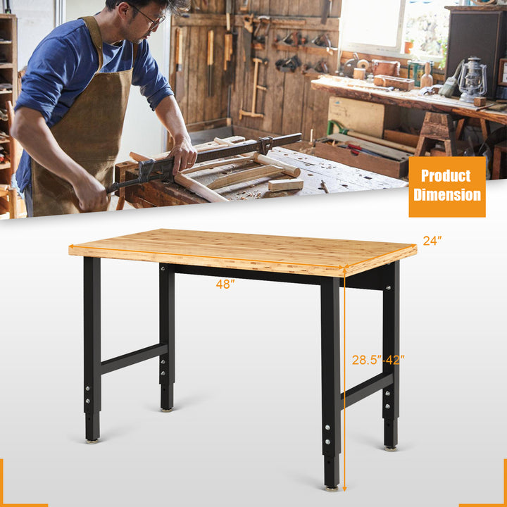 48 Inch Adjustable Height Bamboo Steel Frame Workbench